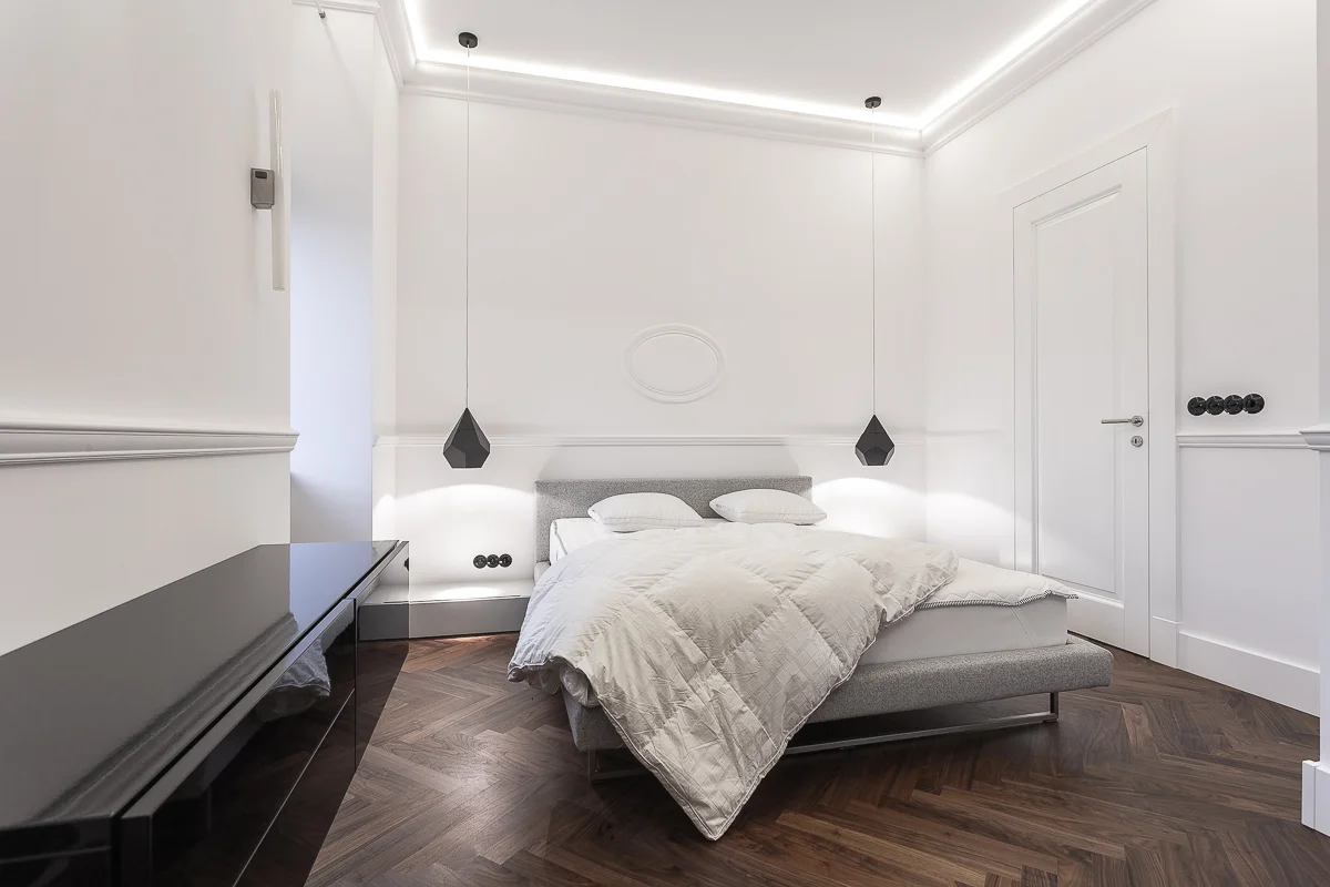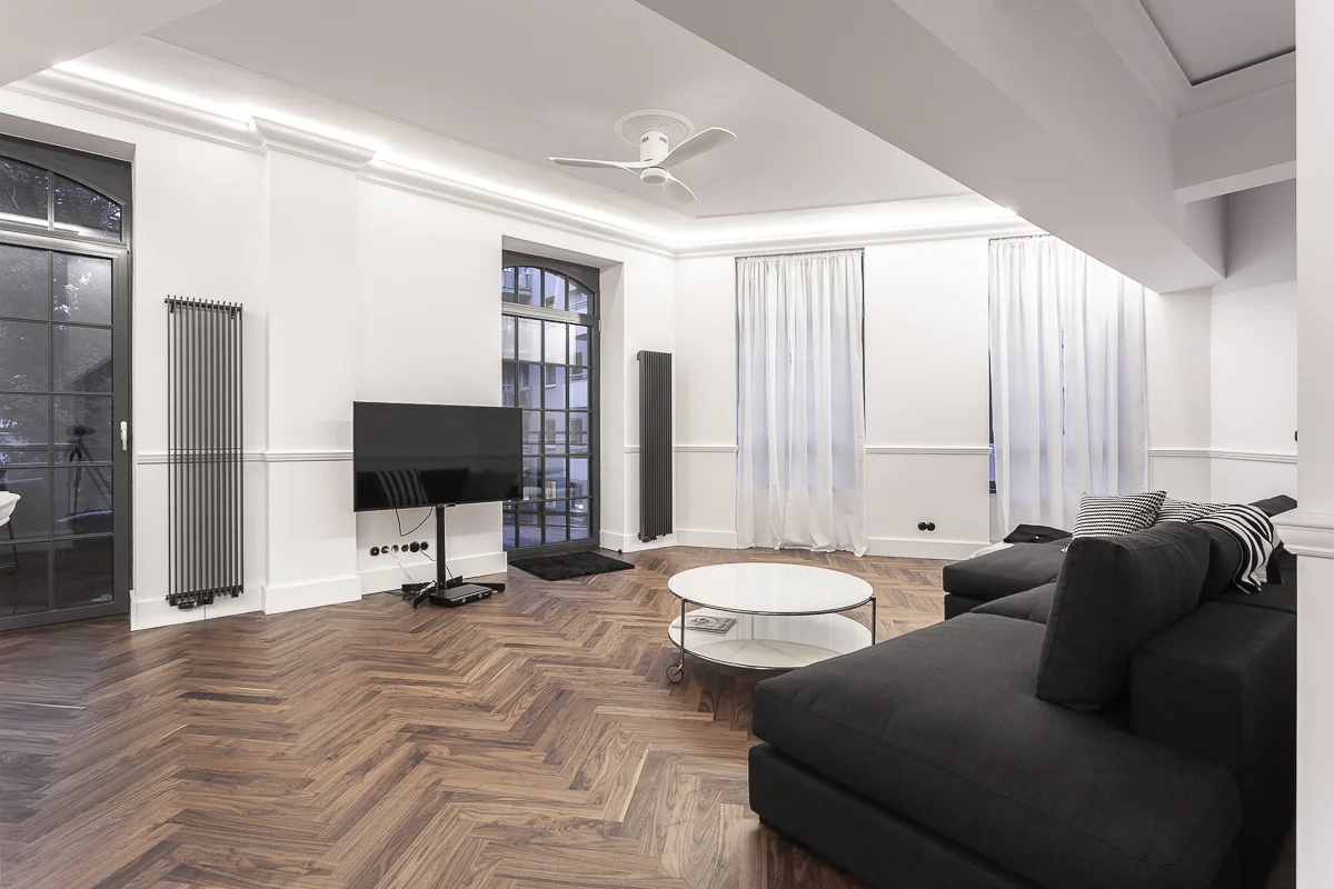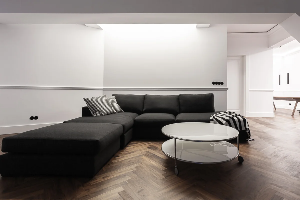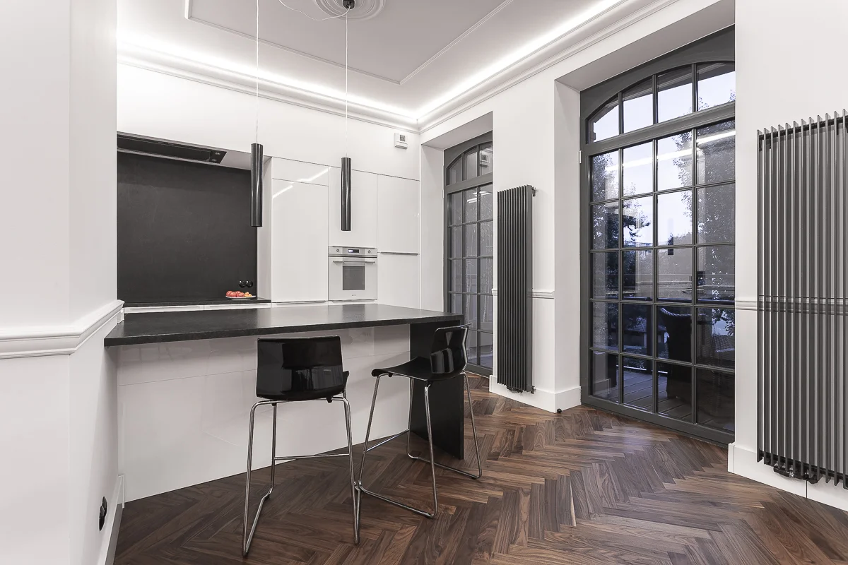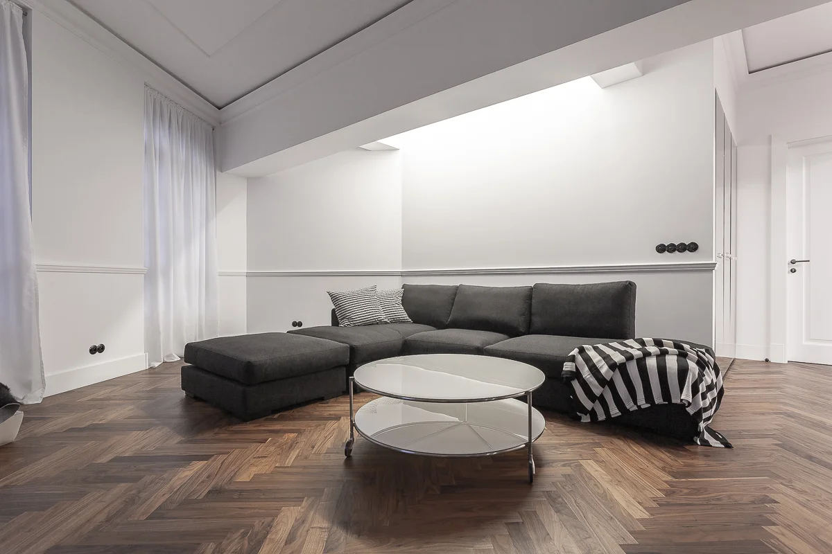 JODEŁKA | PARKIET | ORZECH AMERYKAŃSKI | SZTUKATERIA GIPSOWA | LOFT
